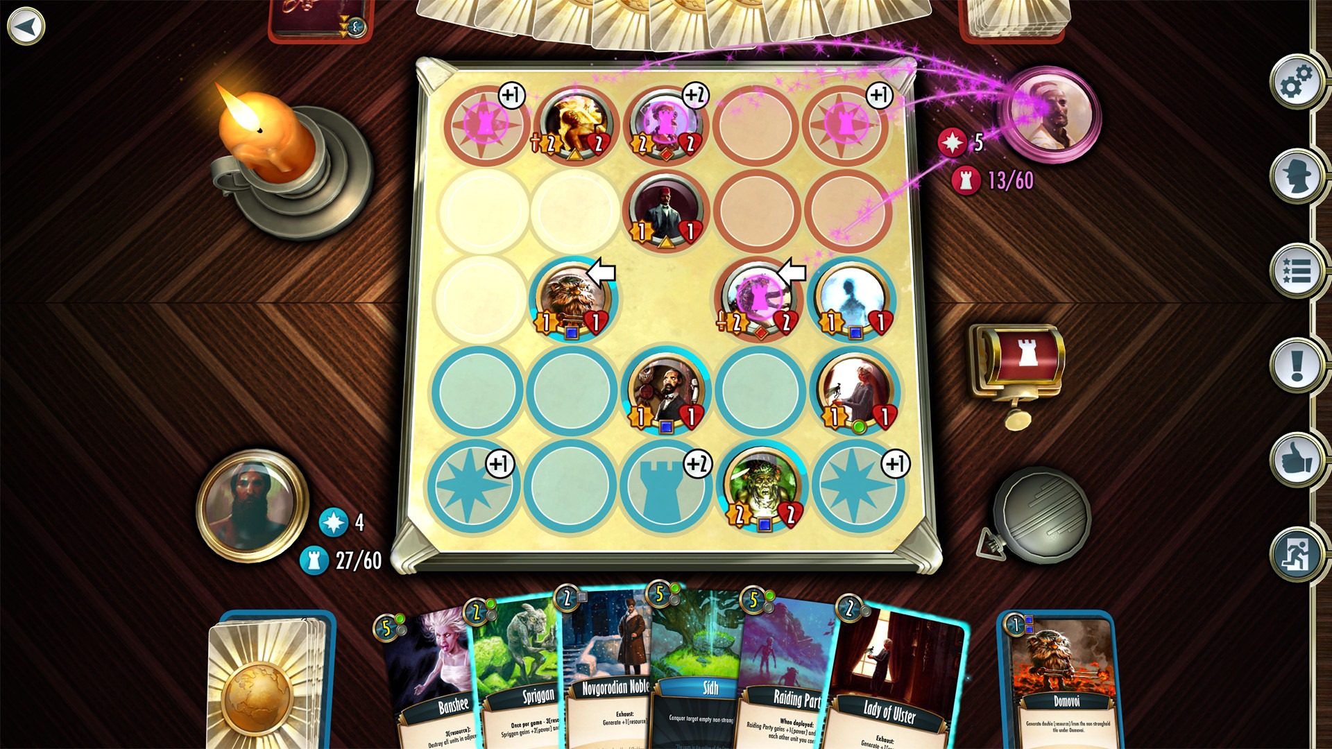 Cabals: Magic & Battle Cards mixes board games and card games together. Players can place units along the 5X5 playable battlefield, using various creatures, devices, and actions through their 30-card decks to take their opponent’s stronghold.
