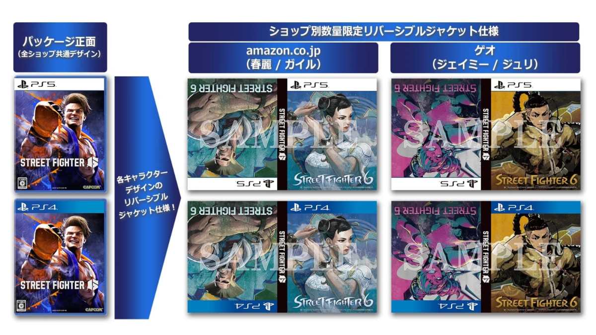 Luke may be a relative newcomer to the World Warriors’ roster, but he’s front and center as the leading man on the Street Fighter 6 cover art. His face and pose are in the cover illustration for the game, but some may prefer to see other characters gracing their shelves when the game launches in June 2023. Capcom and its retail partners are obliging, at least for those in Japan. According to a post from the official Japanese Street Fighter 6 account, players who buy the game from Amazon Japan or retailer Geo will get alternative cover art inserts featuring four different characters [Thanks, ResetEra!] The alternative Street Fighter 6 box art insert are split between the two retailers. They apply to both the PS4 and PS5 versions of the game in Japan.