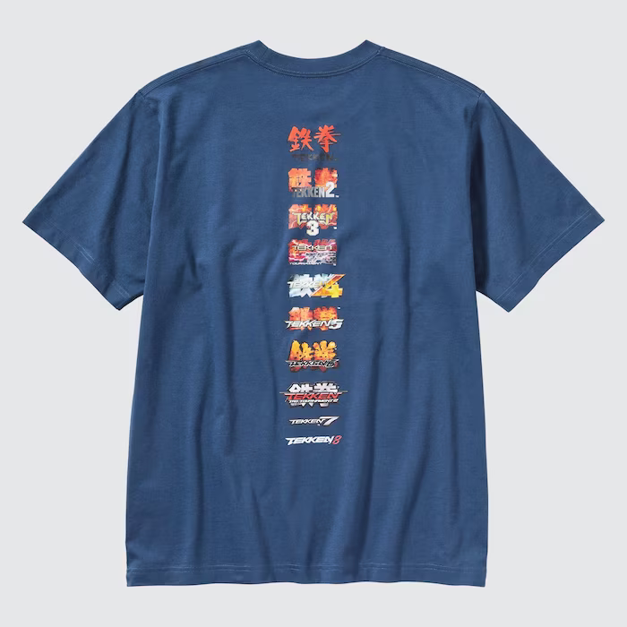 As for the Tekken Uniqlo t-shirts, the first one features the original Tekken logo with Kazuya Mishima on it, and various characters from the first entry on the back. The second tee has the Tekken 2 logo alongside character King on the front. The third t-shirt features the Tekken 8 logo on the front, and every Tekken game logo on the back.