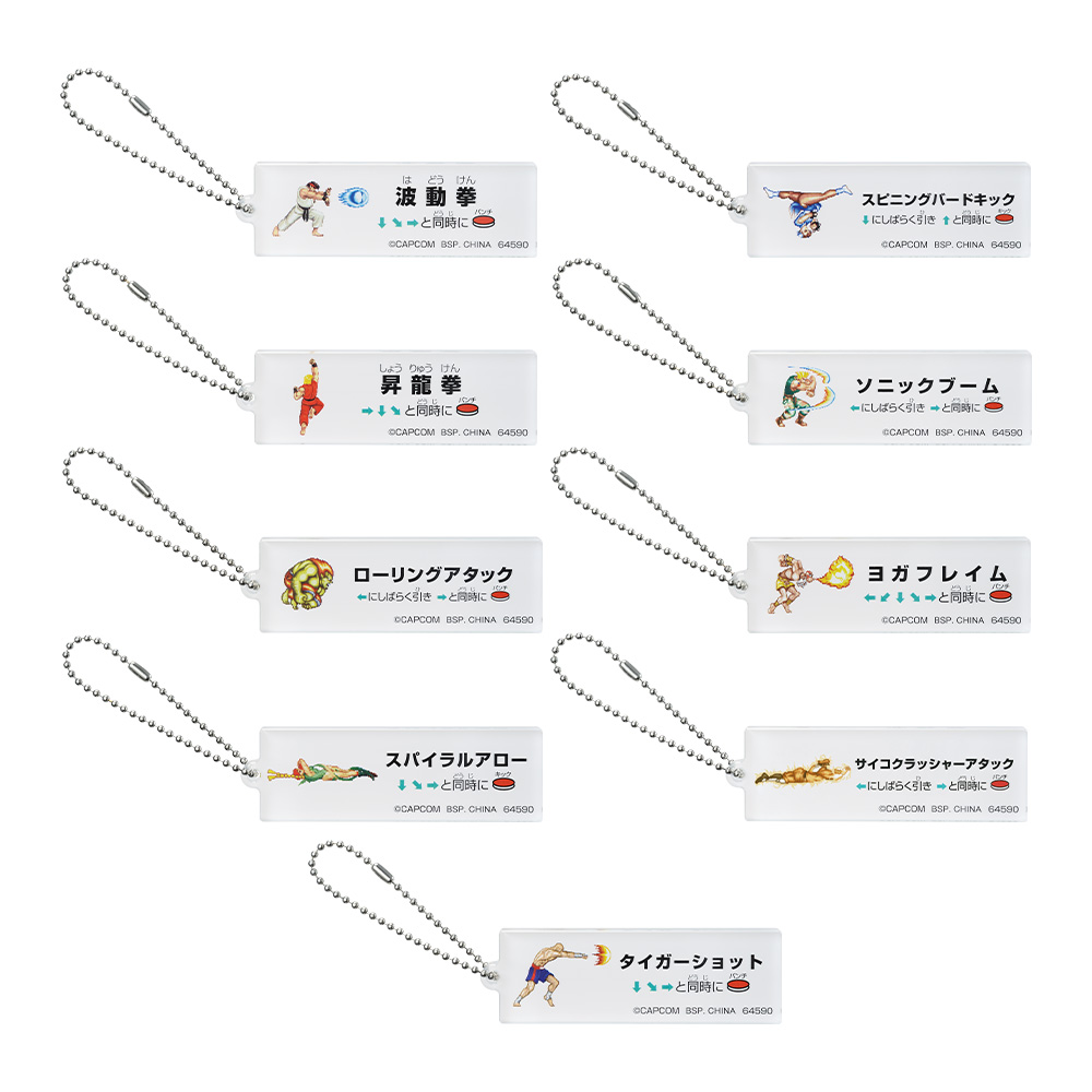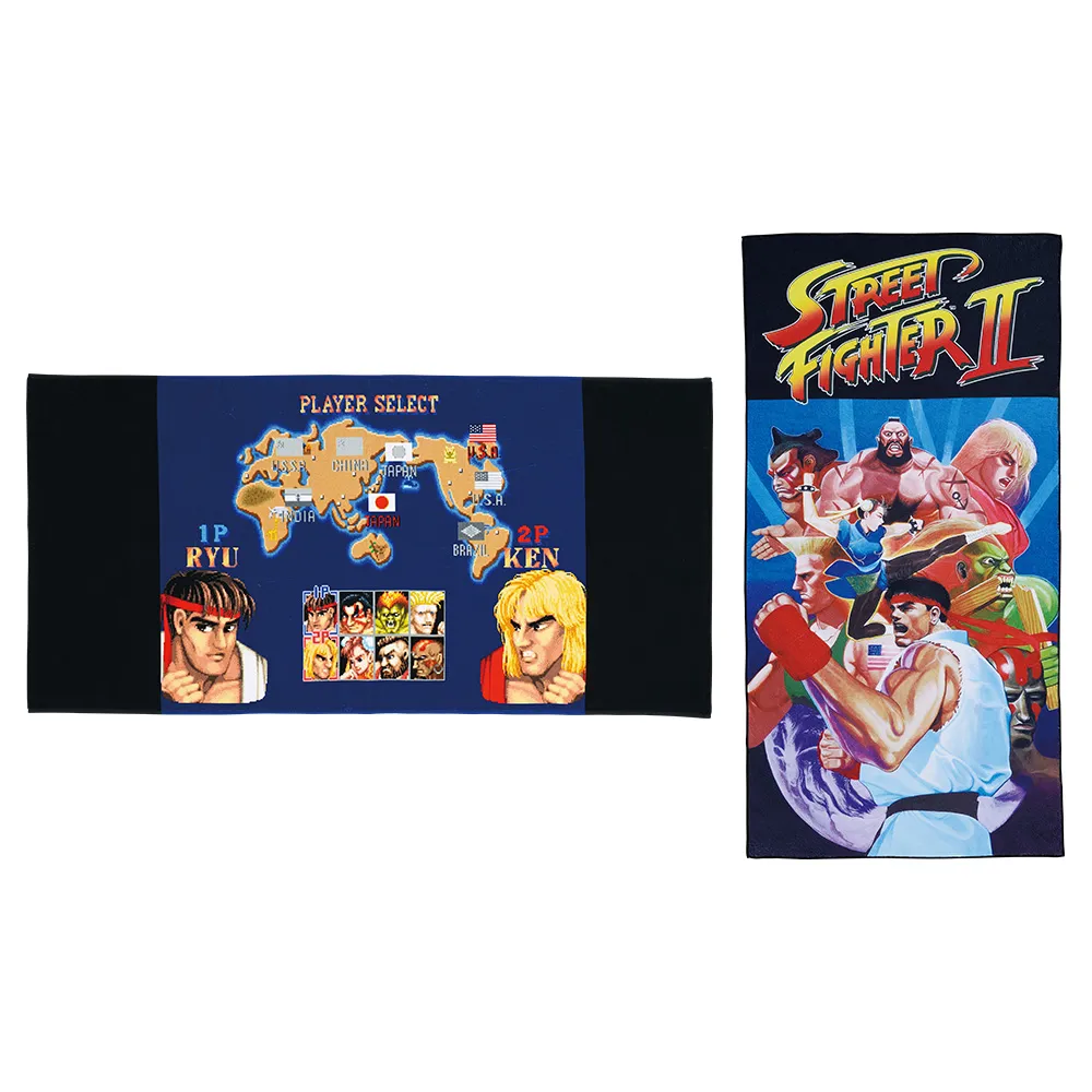 The aforementioned acrylic stand set features the Suzaku Castle stage as a background and includes Ryu and Chun-Li stands. Meanwhile, the towels show the world map character screen from Street Fighter 2 and one of the main key visuals of the original game. As for the sound voice collection, they feature Ryu, Chun-Li, and Dhalsim, and they play voice lines from these characters when pressing a button.