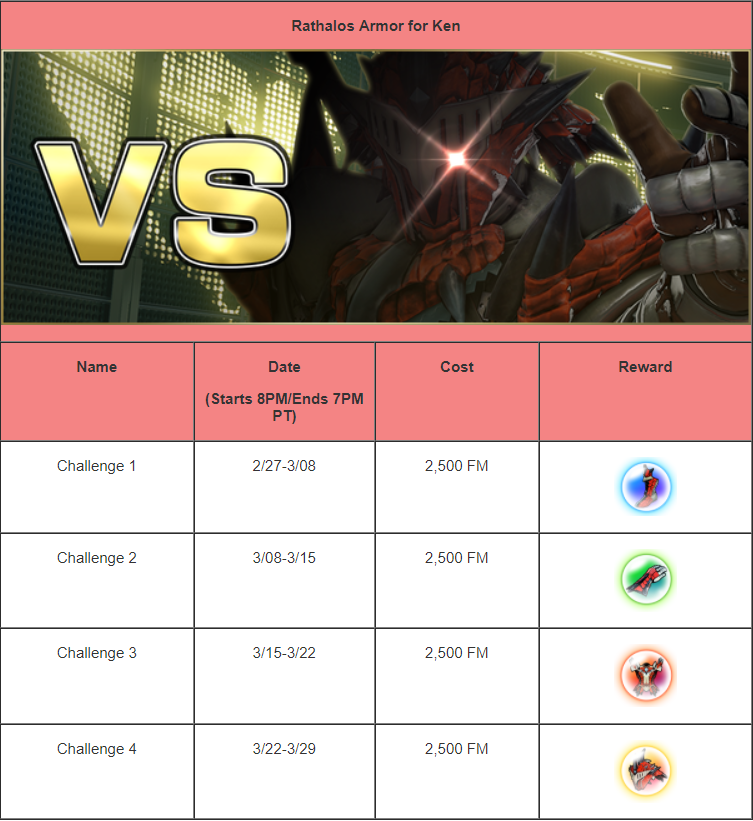 Capcom announced that Street Fighter V: Arcade Edition is receiving Monster Hunter: World collaboration costumes for Ken, R. Mika, and Ibuki. The costumes are available through Extra Battle Mode, which become available in February 2018. Currently, Extra Battle Mode features a Viewtiful Joe costume for Rashid. Below are screenshots for the costumes, as well as the challenges: Ken: