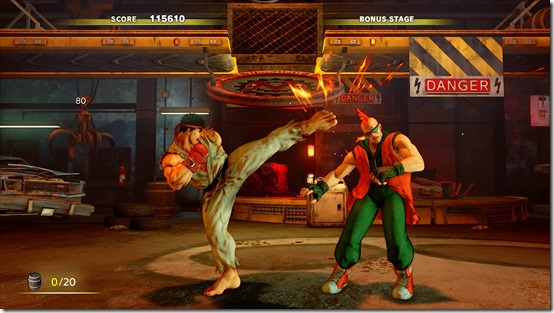 In some paths, the Bonus Stage, which first appeared in the original Street Fighter, will be available where you’ll be tasked with breaking 20 barrels as they plummet into the center of the screen from conveyer belts above. You’ll have “help” from a computer-controlled character who will keep the barrels in the center using his own move set. Breaking all 20 won’t be a walk in the park, so be prepared to figure out what moves work best!