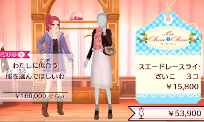 The mode most familiar to veterans of the series, in this mode you take the role of a store owner that coordinates outfits for your customers based on their requests. There are over 20,000 items in the game, the largest amount in the series ever, for you to pick a style for your customer, be they female or male. The other returning jobs: