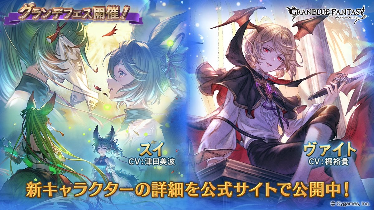 Cygames announced that Sui and Veight will appear as playable characters in Granblue Fantasy as part of the Falsetto in the Autumn Gray story event re-run. The new Flash Gala has started as well, running from May 15 to 19, 2024.