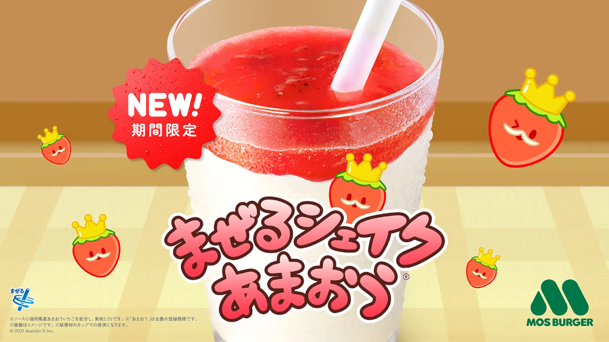 This campaign will primarily feature the Mazeru Shake Amaou drink, which is exclusively available for purchase in the Spring season until late May 2024. MOS Burger will also publish a promotional video starring the Japanese voice actress Miku Ito on April 11, 2024. The video will feature a fictional mode in Suika Game where all characters get changed to the Amaou strawberry.