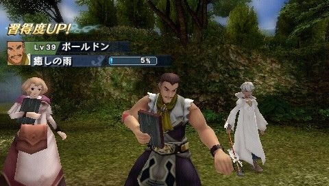 The heroes in Suikoden: The Woven Web of a Century are novice fighters who learn skills from their ancestors in battle. You can master eight different job classes: swordsman, magician, lancer, archer, martial artist, ninja, bard, and chemist. At dinner time you can also learn a sub job like blacksmith.