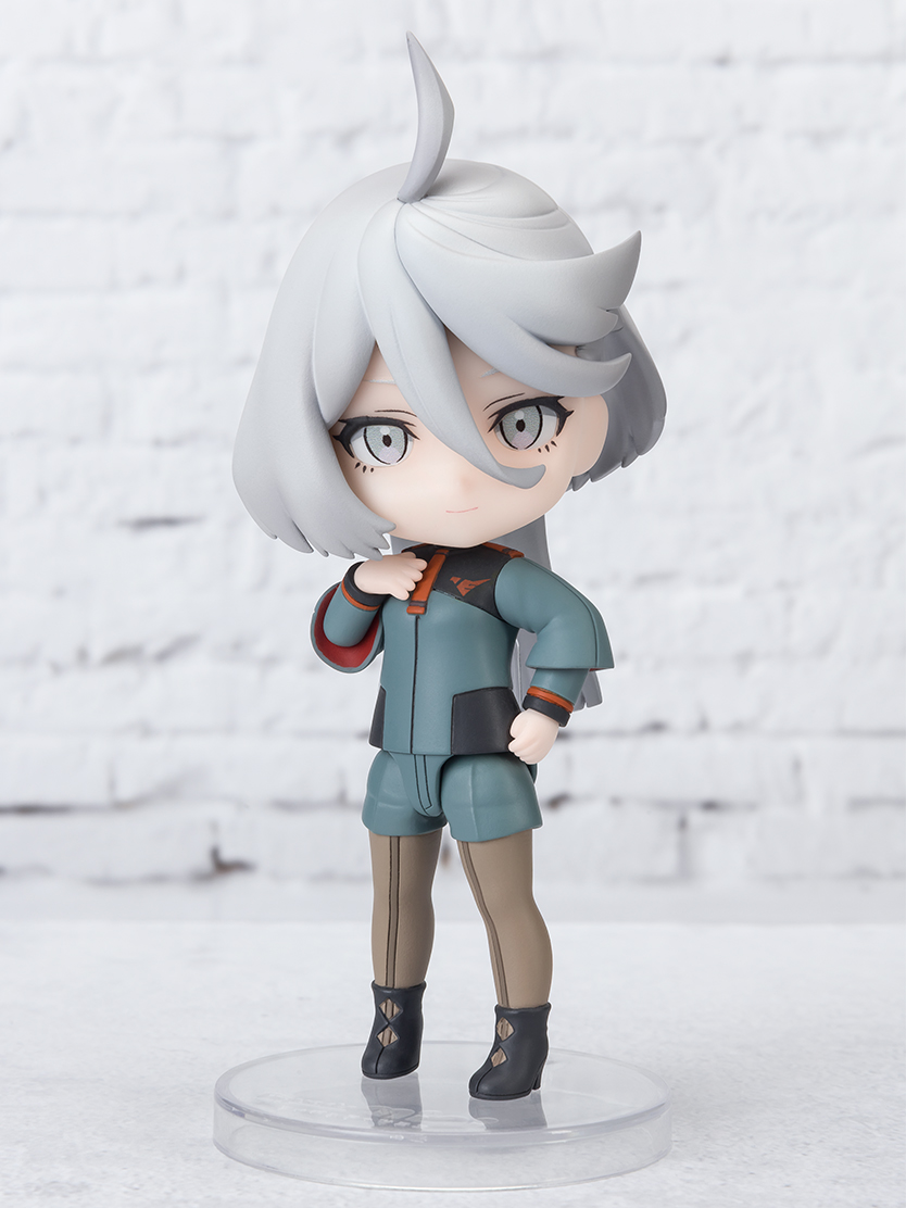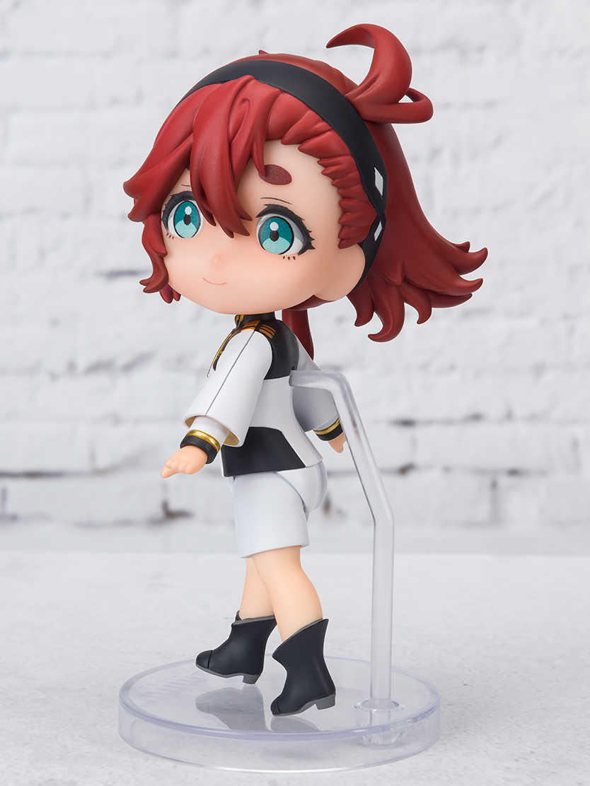 Bandai Namco is running full-tilt to get some small-sized Mobile Suit Gundam: The Witch From Mercury figures to market. The newest entries in the company’s super-deformed Figuarts Mini line will represent the series in the form of Suletta Mercury and her fiancé, Miorine Rembran. They’re now up for pre-order in Japan [Thanks, Hobby Watch!] The Suletta Figuarts Mini figure brings a cute, super-deformed rendition of Gundam: The Witch From Mercury‘s protagonist Suletta Mercury to shelves. She appears dressed in her Asticassia School of Technology uniform. The uniform is colored in the distinct black, white, and gold color scheme worn by the “Holder,” the top-ranked mobile suit duelist at the school. The figure stands 90mm tall (about 3.5″ inches). It’s manufactured with what Bandai calls its proprietary “Glittering EYE” method to enhance the coloring and liveliness of the figure’s eyes. It also includes a stand and replacement arms. Buyers can recreate Suletta’s anxiety-ridden posture with a simple swap of the hands.