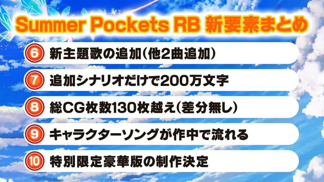 Over the weekend, Key announced an upgraded version of their most recently released visual novel Summer Pockets. The upgraded version is titled Summer Pockets: Reflection Blue, and adds four new routes and more, with the entire game now boasting over 2 million characters of text total. According to Key, Reflection Blue was originally meant to be a fandisc thanks to Summer Pockets‘ great reception and sales, but they felt it would be a waste to just leave it at that. So they decided on releasing a new version with new character routes.