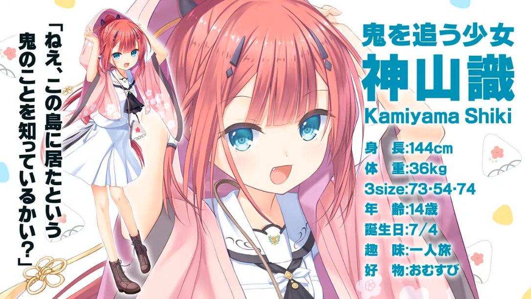 There’s also a completely new heroine, Shiki Kamiyama, who’ll appear in the game. She’s fond of traveling by herself, and likes eating rice balls.