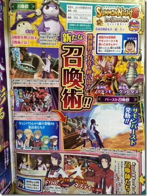The magazine also reveals a new feature called “Summon Burst” where each unit puts together their Summoning technique in order to bring out a whole new summon. Summon Night 6: Lost Borders will release in Japan in spring 2016 for PlayStation 4 and PlayStation Vita.