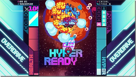 Super Galaxy Squadron was designed to be forgiving to shmup newcomers, being generous with health and providing an easier difficulty curve. It has a hardcore mode where you die in one hit for players looking for a greater challenge.