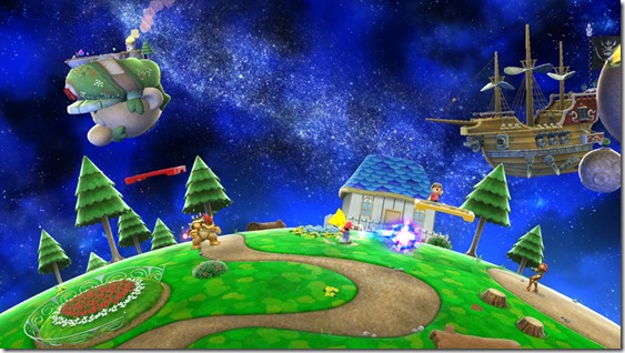 The Wii U version of the new Super Smash Bros. game will include a stage based on Super Mario Galaxy, a screenshot on its official website reveals. Additionally, director Masahiro Sakurai has confirmed via Miiverse that, yes, there will be Mario Galaxy-like gravity effects at play in this stage. Sakurai stated: “The pull of gravity emanates from the center of the planet, so this will require using brand-new tactics.” Note that this stage has only been confirmed for Super Smash Bros. for Wii U. Earlier in the year, Sakurai shared that one of the main differences between the Wii U and 3DS versions of the game would be in the stages that each one includes, with the Wii U version including stages from console games and the 3DS version from portable ones.