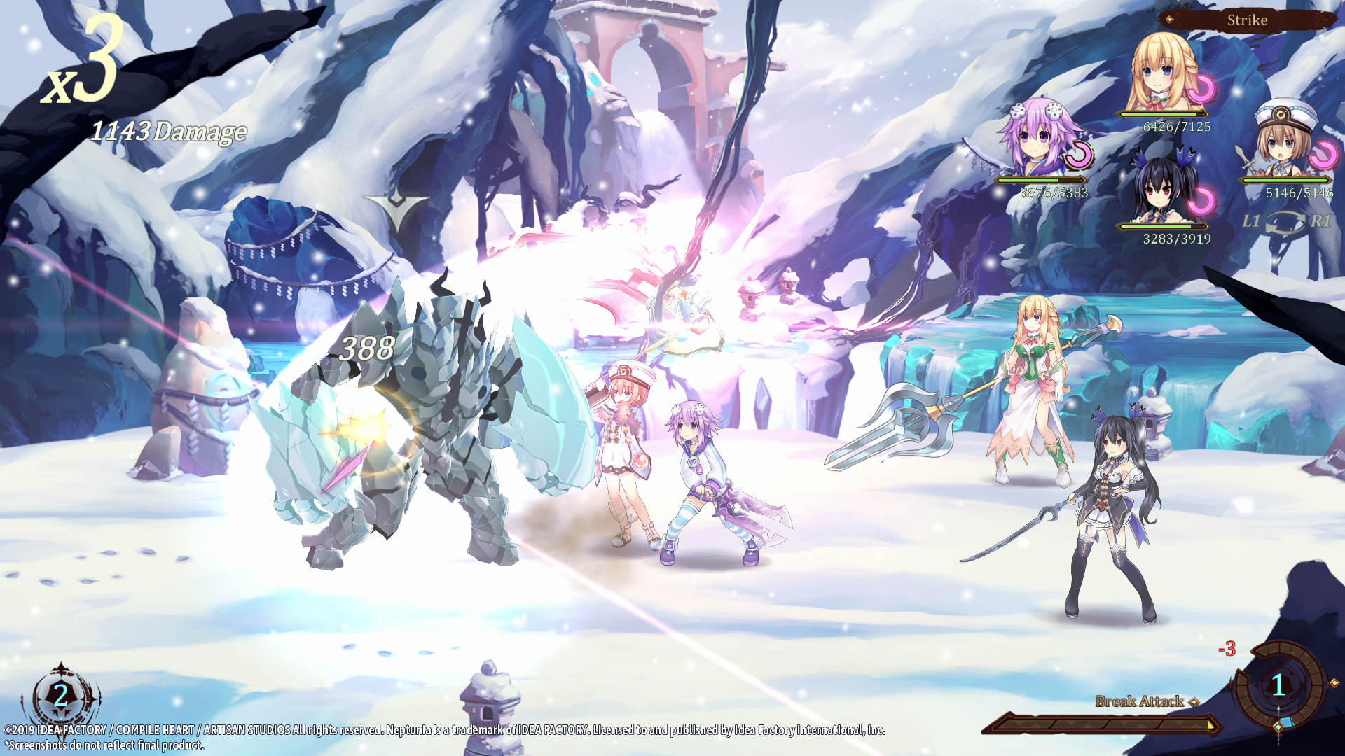 - New Me in 2D – Your favorite Goddesses jump from three dimensions to two! Artisan Studios and Compile Heart proudly present new, vibrant backgrounds and newly developed 2D animations hand drawn in this action-inspired side-scrolling RPG! With Artisan Studios and Tsunako collaborating to create new background and character art, fans and newcomers alike can see Gamindustri in a new 2D perspective.