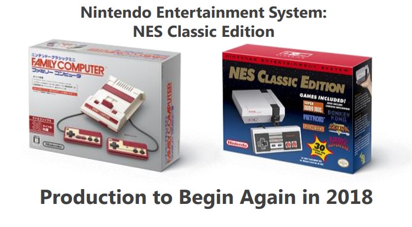 As has been announced already, a decision has been reached to resume production of the Nintendo Entertainment System: NES Classic Edition in 2018. We are hoping that consumers eager to purchase this system will wait just a short while longer. Note: This hardware is called the Nintendo Classic Mini: Family Computer in Japan and the Nintendo Classic Mini: Nintendo Entertainment System in Europe and Australia