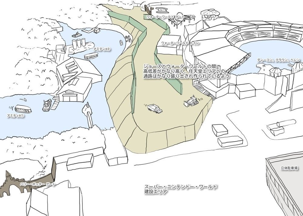 Super Nintendo World seems set to become the first area in Universal Studios Japan to have two levels to it, seemingly recreating the park as shown in the original promotional trailer. [Thanks, @LCASTUDIOS_USJ on Twitter!]