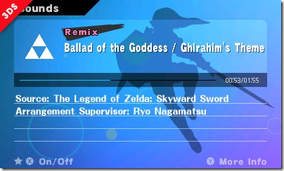 “The 3DS version has an excellent Sounds collection! The design looks nice for a sound test screen, doesn’t it?” Sakurai said in a Miiverse post. “The font color for the ‘Remix’ text on remixed songs comes in pink or white,” he explained. “The pink ones are songs arranged for this version of Super Smash Bros., while the white ones are remixes made in earlier Smash Bros. games. This means there are reoccuring songs from past releases.”