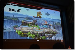 Each of the stages are shown at a 30-degree angle, as if the viewing angle was any higher, such as 40 degrees, characters would be mostly hidden when grabbing ledges, and might misjudge the distance from ledges. Battlefield