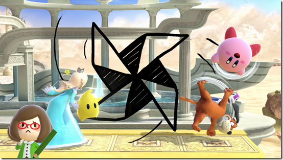 The host of Swapnote on the Nintendo 3DS system joins the battle. Her drawings all look very cute—but they still do serious damage, so be careful!