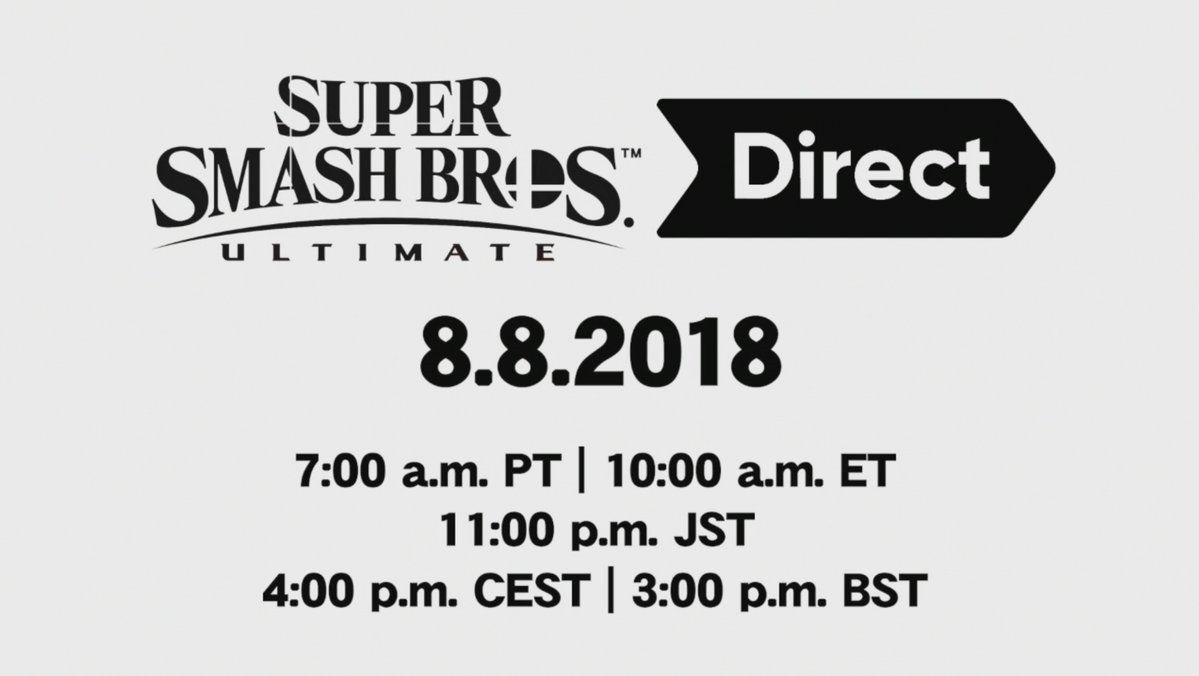 A new Nintendo Direct has been announced via Twitter. On August 8, 2018, Masahiro Sakurai, Super Smash Bros. Ultimate’s Director, will be a part of a presentation updating people with new information on the game. It will be taking place at 7am PT/9am CT/10am ET/3pm BST/4pm CEST/11pm JST.