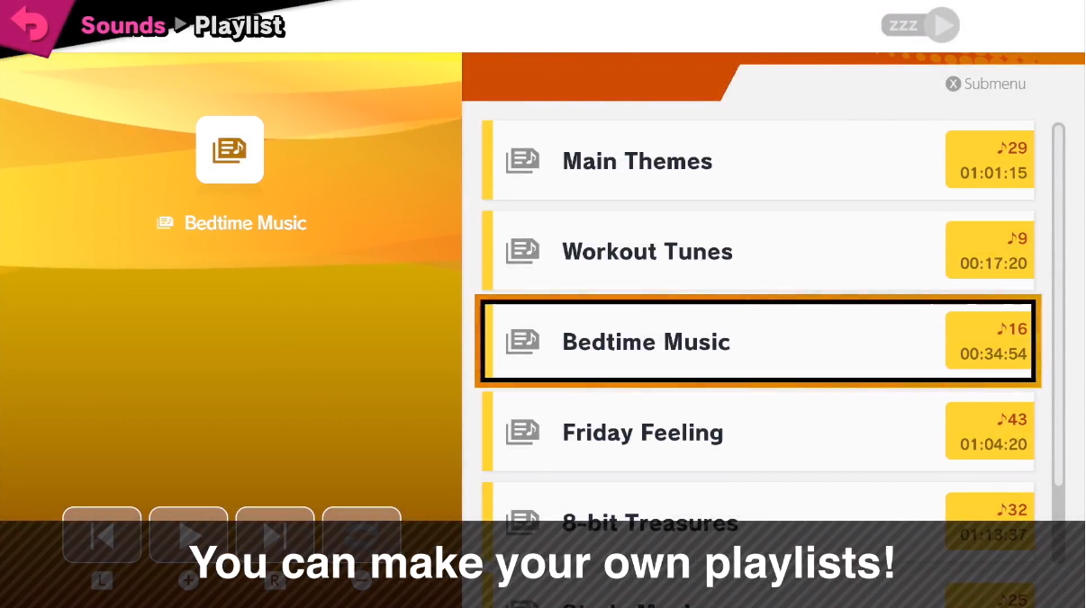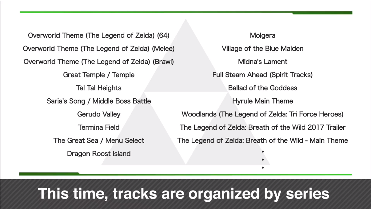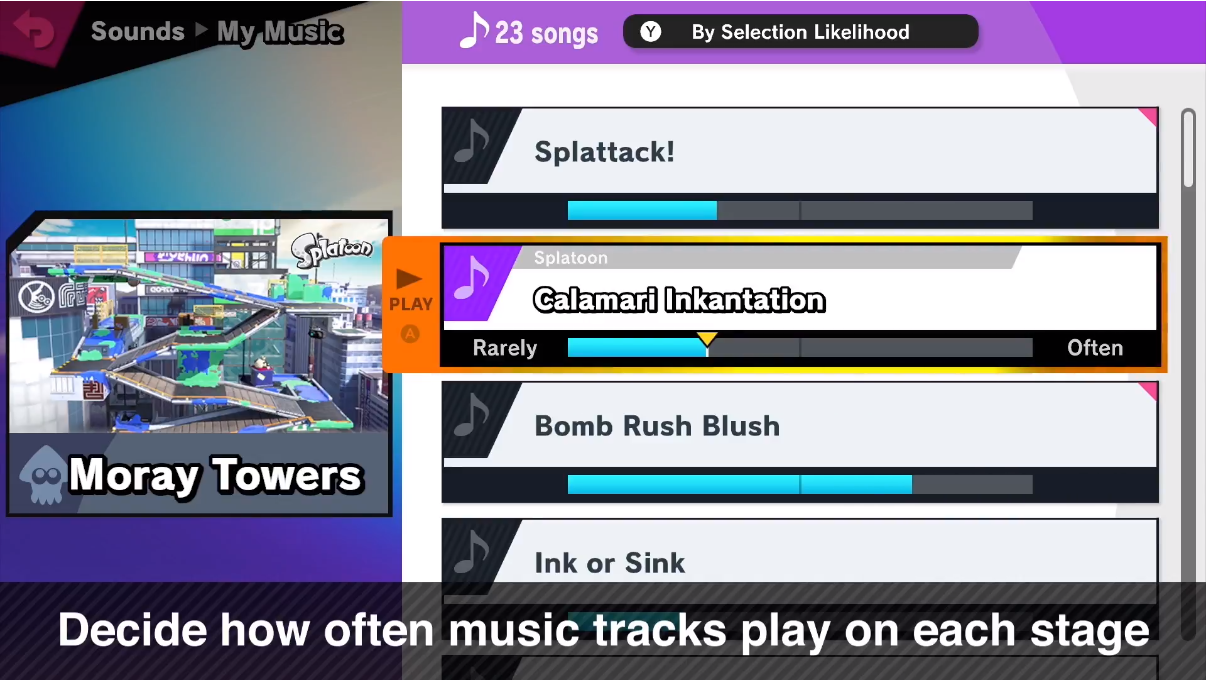 As has become series tradition, the My Music feature is making a return, where players can choose how likely songs will appear. However, instead of separating it by stage, tracks are organized by entire series, such as by The Legend of Zelda series.
