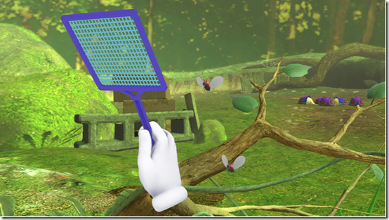 Flies buzz around the stage, and a hand holding a fly swatter goes around swatting up a storm. Getting caught in the swat-storm will cause severe damage, so think like a fly and run away!