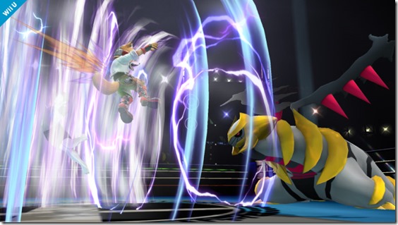 Arceus will use Gravity to slam down any nearby airborne opponents. If you aren’t on a platform, you will get dunked off the stage.