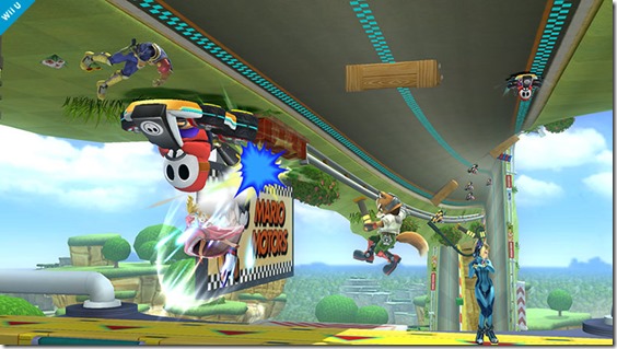 Super Smash Bros. for Wii U will have a Mario Circuit stage, based on Mario Kart 8, director Masahiro Sakurai revealed over Miiverse. “The Mario Circuit stage is modeled after Mario Kart 8, so the course flips upside down,” Sakurai wrote. He added: “On the upside-down course, Shy Guys jump their karts upside-down too!! It’s amazing how the course twists on this stage. Of course, the gravity for the fighters will always go downward.” ![]()