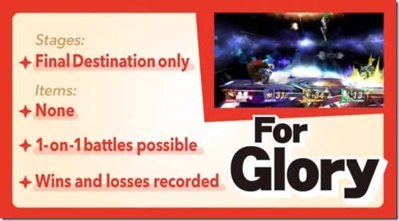 Super Smash Bros. on Wii U and Nintendo 3DS will have two kinds of online modes—For Fun and For Glory. Director Masahiro Sakurai discussed both modes in a Nintendo Direct presentation this afternoon.