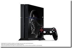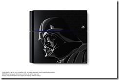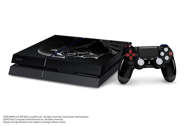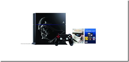 The PlayStation 4 bundle includes a Darth Vader PS4 with a 500 GB hard drive, a special controller, a voucher for the four Star Wars games, and either Star Wars Battlefront Deluxe Edition or Disney Infinity 3.0: Star Wars plus a figure pack that includes Boba Fett.