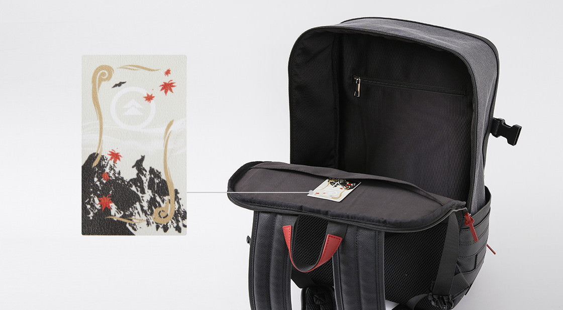The Jin Sakai Model Jacket features a dark color scheme based on Jin’s armor from Ghost of Tsushima. The collar has Jin’s Ghost mask design embroidered on it and can be worn up or removed from the jacket. The Sakai Clan’s emblem is sewn onto the left arm sleeve. The front pocket zipper has a red knotted charm based on the ropes founds on Jin’s Ghost armor. The inside of the jacket features a tag with the Sakai Clan emblem, a golden bird, a fox, maple leaves, and wind motifs. The jacket also comes with a white hand towel tenugui with “Jin’s Journey” written in kanji and “Ghost of Tsushima” underneath the kanji. The strings on each side of the towel can be pulled to attach it on the waist like a fundoshi. The jacket comes in sizes Medium to XXL.