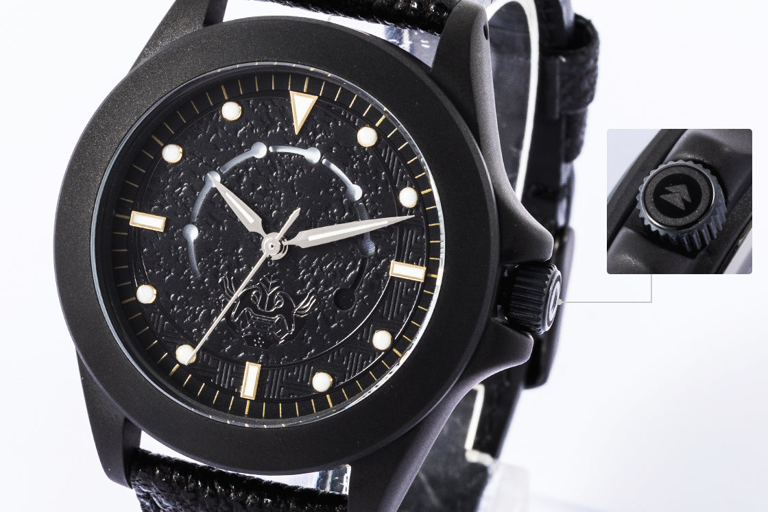 The Jin Sakai Model Watch comes in all black and features a face with the Ghost’s mask and the crown has the Sakai Clan emblem. The display features a day and night feature modeled after the Legend gauge from Ghost of Tsushima. The band of the watch is made out of Himeji Kurozan leather, a rare material made through traditional tanning and lacquering techniques using Japanese black beef. This sort of special leather is stated to have been used for armors crafted during the Sengoku period of Japan.
