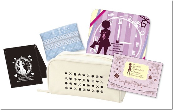 Komaru Naegi’s Girl’s Pouch Set A cosmetics pouch with mirror, blotter paper, pocket tissue cover and a hand towel splashed with Naegi’s silhouette.