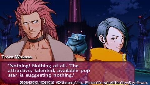 What really gets me isn’t the great story and engaging writing. Well, I suppose it does, since each night since I downloaded Sweet Fuse, I’ve been playing from about 10pm to 1am. Still, what’s more is how wide-reaching the game is. Yes, this is a dating sim geared towards women, but the story is so fantastic that I think anyone who gave it a chance would enjoy it. (Especially if they went for Mitarashi. Male escort FTW.) The romantic elements are so subtle and woven in so easily and naturally that it feels like a compliment to an alreadt strong adventure. It’s funny, touching, clever and thrilling, all at the same time. Really, I can’t recommend Sweet Fuse: At Your Side highly enough. If you have ever been interested in a visual novel, this is the game to go with. If you’re a man, go ahead and play it anyway, going for whatever guy seems most interesting or entertaining to you, for an incredible story. If you’re a woman, enjoy the opportunity to swoon over virtual men and read a great story. Sweet Fuse is a great game for anyone with a PSP or Vita, and my greatest wish right now is that it does well enough for Aksys to agree to take more chances like this. Food for Thought: 1. Go for a “good ending” with each guy, if you want a happy ending with him. 2. Save before having Saki “get mad,” as you can miss a CG in some cases. I missed one of the Mitarashi CGs because I had her get mad at him. 3. Replay at least once, going with the Secret Character, if you want to know Count Hogstein’s identity and his motivation for running these games.