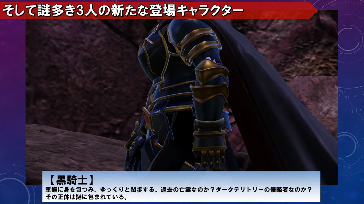 Black Knight A person clad in heavy armor seen walking slowly can be seen in the trailer. Is it a vengeful spirit from the past? An invader from the Dark Territory? A mysterious being whose true nature is a mystery. Communication Events and Dates