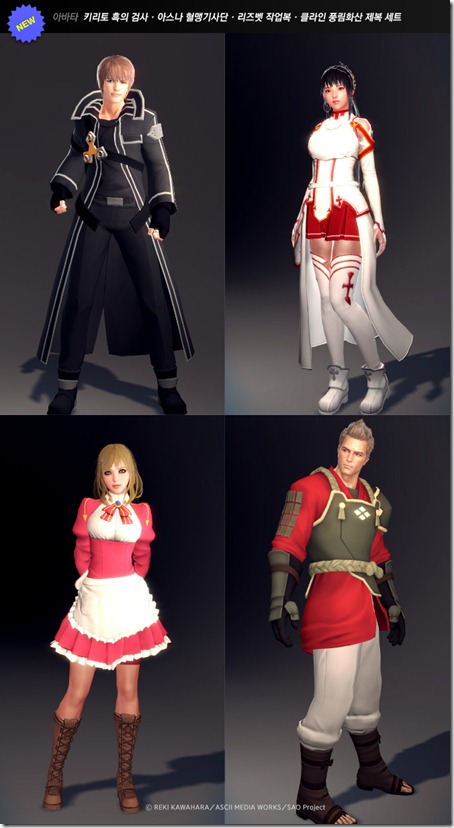 Players of the Korean version of Mabinogi Heroes will be able to snag full costumes of Kirito, Asuna, Lizbeth and eternal-friendzone Klein. And damn, do these actually look really nice.