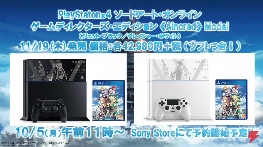 The Sword Art Online edition PS4 will release in Japan on November 19, 2015 alongside the release of Sword Art Online: Game Director’s Edition.