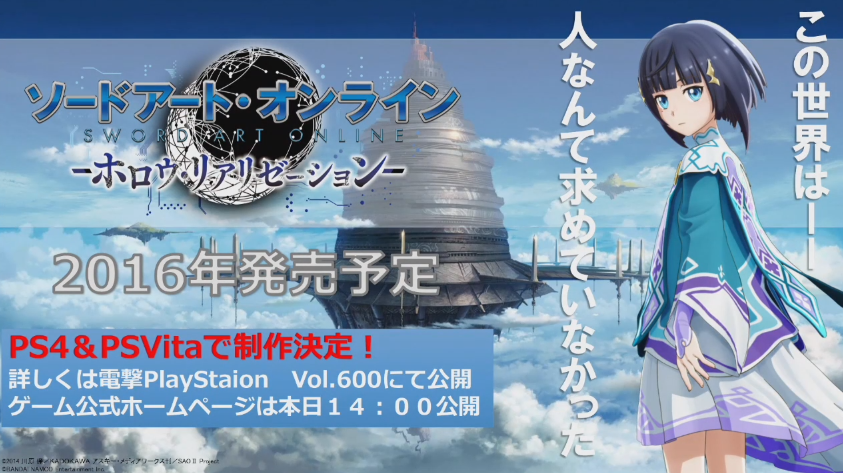 Sword Art Online: Hollow Realization will release in Japan in 2016 for PlayStation 4 and PlayStation Vita.
