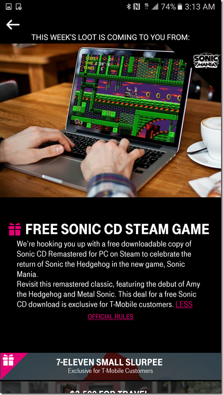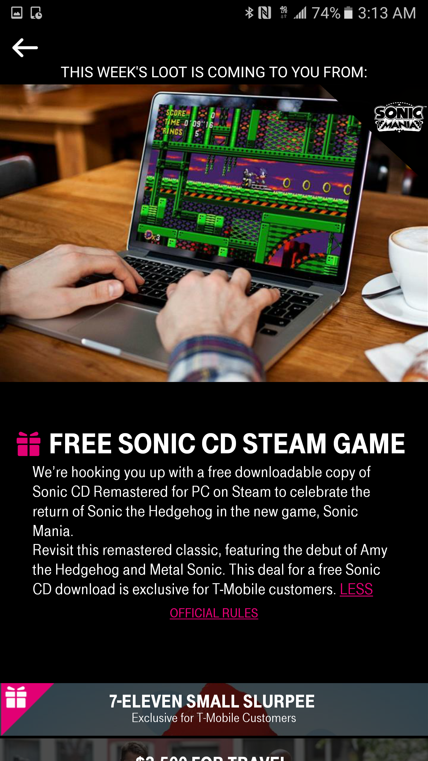 Wireless network operator T-Mobile is celebrating the release of Sonic Mania today with a special “T-Mobile Tuesday” that gives customers a free copy of Sonic CD on PC and a chance at winning Sonic Mania.