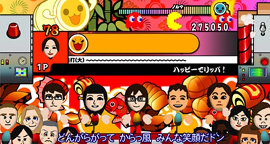 Compared to the 30 something songs in Taiko Drum Master, the only Taiko no Tatsujin game Namco Bandai released in North America, 70 is a substantial increase. Other Taiko no Tatsujin games hovered in the fifties so this isn’t as major for Japan. The Super Mario Brothers theme which was playable in Taiko no Tatsujin DS and the Doraemon theme from Taiko no Tatsujin: 7-tsu no Shima no Daibouken are part of this mix. Both of them will be playable with a plastic drum for the first time in Taiko no Tatsujin Wii. What other songs are you going to see? A theme song from Kamen Rider, Jungle P from One Piece, and this mix of rock and violins.