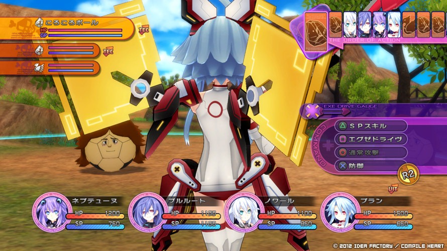 Dengeki PlayStation also revealed Yellow Heart a new voluptuous goddess described with an innocent personality. It sounds like Yellow Heart is one of the game’s enemy’s since she’s standing in Neptune’s way. New screenshots show a soccer ball enemy… is this a jab at Inazuma Eleven?