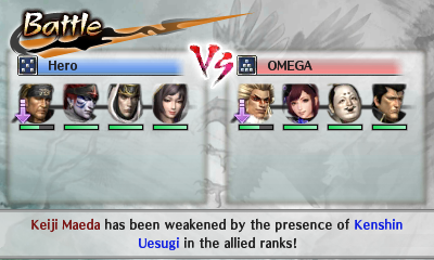 Once all of this is configured, the next time you cross paths with someone that has Samurai Warriors: Chronicles data in their 3DS and the device is in sleep mode, a simulated battle will begin between your party and theirs. At the end of the battle, you’ll receive the weapon you chose to obtain from StreetPass battles.