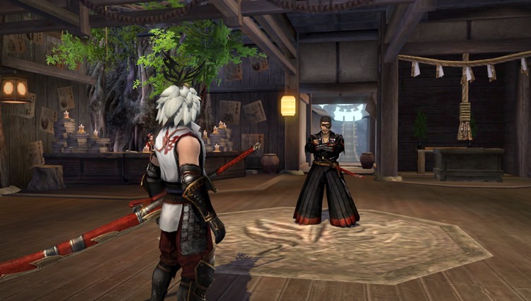 In the image above on the right is the home you’ll be staying in to rest after hard fought battles against demons. You’ll be able to change your equipment and take a look at a record of all your actions at home. There seems to be a fox-like creature who has grown a liking to the Mononofu hero, that stays there to look after things, as well.