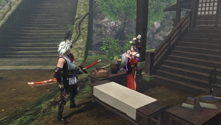 Finally, above is a booth for a temple service that manages “Mitama”, a spiritual power that can be equipped on your weapons for hidden abilities. A mysterious shrine maiden will be in charge of helping the Mononofu here.