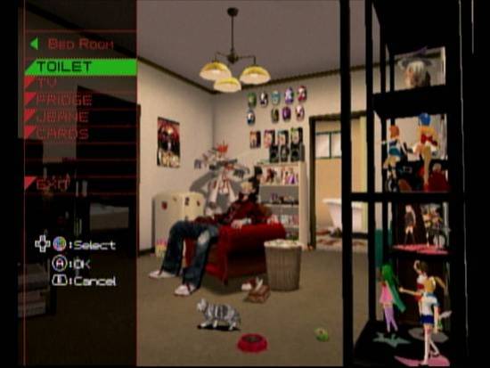 When Travis isn’t hunting members of the United Assassin Association he kicks it at the No More Heroes motel. His grungy surroundings are semi-interactive. You can’t freely move around, but you can choose what Travis does through menus.
