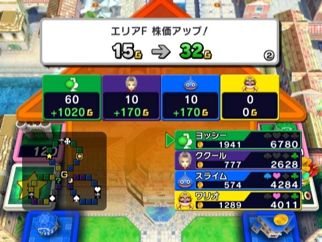 The stars from Dragon Quest and the Mario series are meeting in the board game world of Fortune Street. This Monopoly style game has players purchase property, invest in stocks, and play slime racing mini-games. Whoever has the most money wins.