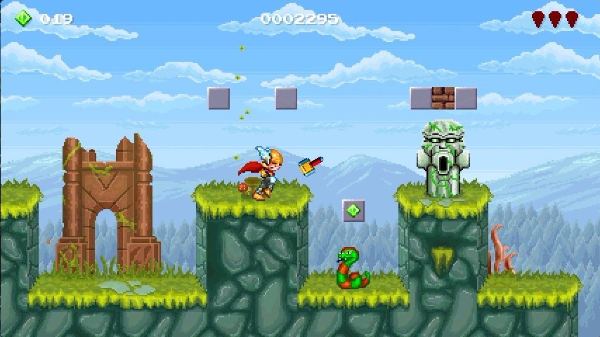 Thor has only just received his hammer for his eighth birthday, but he can still put it to good use by throwing it at enemies in platformer Tiny Thor’s Revenge.