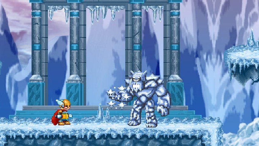 Thor hasn’t quite gotten used to his hammer yet in Tiny Thor’s Revenge. The weapon does try to return to him after he throws in, but things can get in the way and block its path. Clever players will be able to use this, hurling the hammer out and having it bounce around enemies and obstacles, doing extra damage.