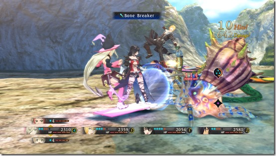 The brief segment of Tales of Berseria people were able to play took place on a beach. Velvet and her crew were searching for a Malak which looked like a cat in a witch costume. This entailed searching along some cliffs and coves, encountering various enemies along the way.