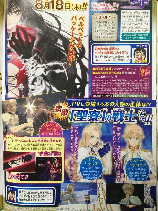 While we’ve previously seen Tales of Berseria’s Teresa and Oscar in a trailer and a few screenshots, we didn’t know much about them until now, as Bandai Namco shed some light on the two characters. [Thanks, Game Jouhou and @kazu4281.]