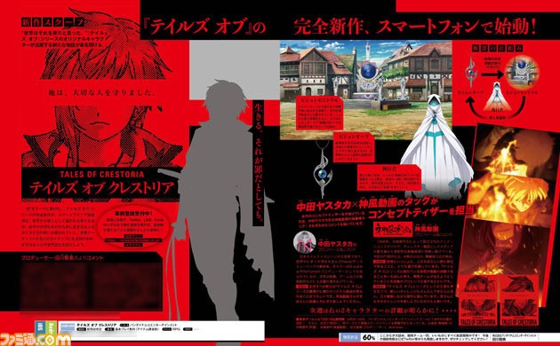 Bandai Namco announced a completely new Tales of game in this week’s issue of Famitsu with Tales of Crestoria, an original new game for smarpthones. The theme of the game is “crime” and it tells the story about a protagonist who must carry the burden of a crime on his back while also living for the sake of someone or something important to him.